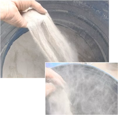 The RCD uniquely mills dry or wet materials from 10mm to <30μm in a single pass, with sublimation (freeze-drying). The RCD mill activates amorphous glass slag into a highly reactive pozzolan powder.